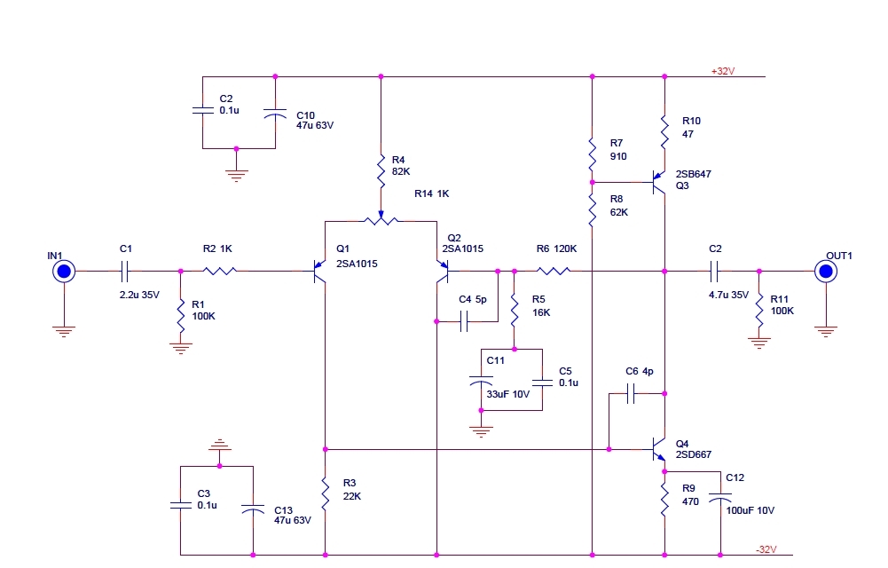The design features differential input and single-ended class A output. The supply voltage is good to +/-32V which means a lot of headroom comparing to normally +/-15V opamp circuits. When matches with a decent DC power supply, the circuit can beat off-the-shelf die-size opamp with ease. This board can be used as building block for preamplifiers, active filters and the gain stage of power amplifiers.
