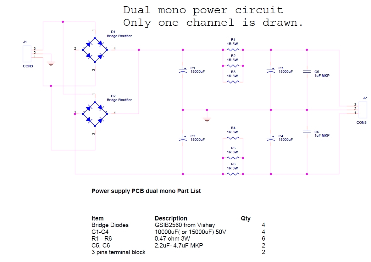 This is a power supply PCB dedicated for heavy duty class A power amplifier application. The PSU configuration uses CRC topology, which is particularly good for single-ended power MOSFET amplifiers and other similar class A amplifiers. The board also features dual mono structure so each channel of a stereo amplifier can be served individually by each power supply.