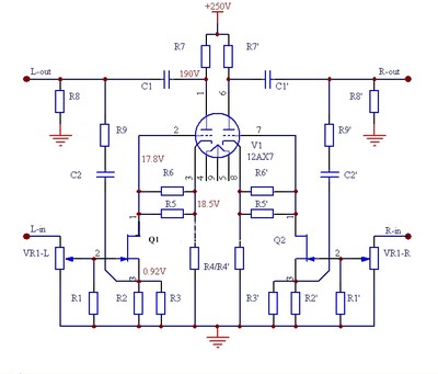 This is a low noise low distortion JFET-tube hybrid pre-amplifier PCB. The circuit features a low noise low input capacitance J-FET ( 2SK117) input, and followed by 12AX7 as second stage and output. On bench it achieved 0.005% THD at 1Vrms output and 0.008%THD at 2Vrms output.