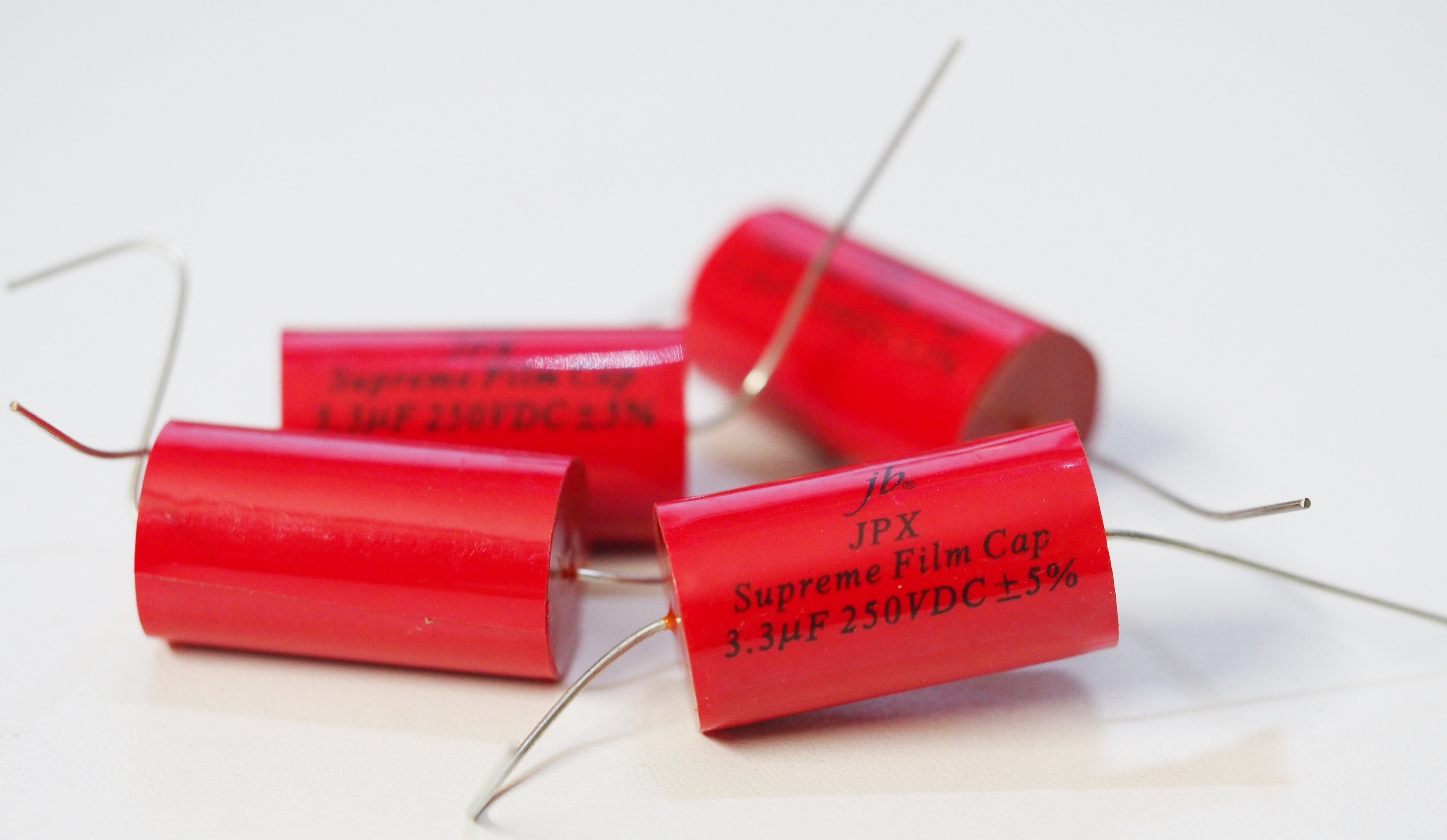 This is four pieces of jb JPX series 3.3uF 250VDC Metalized Polypropylene audio grade MKP capacitors.