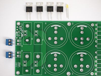 The design uses CRC filtering configuration for high speed and good DC regulation. The PCB uses four discrete diodes for rectification, and four pieces of very good sound MUR860 are to be installed with this kit. The board can also be adapted for CLC filtering by replacing the serial resistor with dc choke.The kit includes :