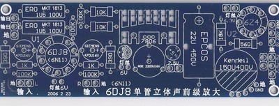 This is the PCB of a tube preamplifier. The design takes a simplistic approach, using one 6DJ8 ( or 6N11) for single stage amplification. Most of the famous preamplifier also use one stage to achieve superb sonic performance.